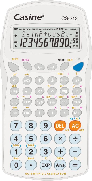 Vědecký kalkulátor s ochraným krytem, s 10+2 místným dvou řádkovým displejem, plastovou klávesnicí pro dlouhou životnost, automatické vypnutí, 240 funkcí, výpočet zlomků, převod z desetinného tvaru na zlomky a obráceně, procentové výpočty, trigonometrické a inversní trigonometrické funkce,...