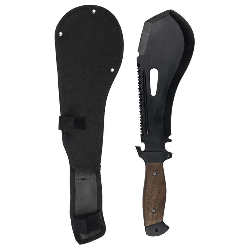 Ocelová speciální mačeta - černěný povrch. Dřevěná rukojeť pro dobrý úchop. Dodávána včetně nylonového pouzdra se suchým zipem. przeczytaj całość