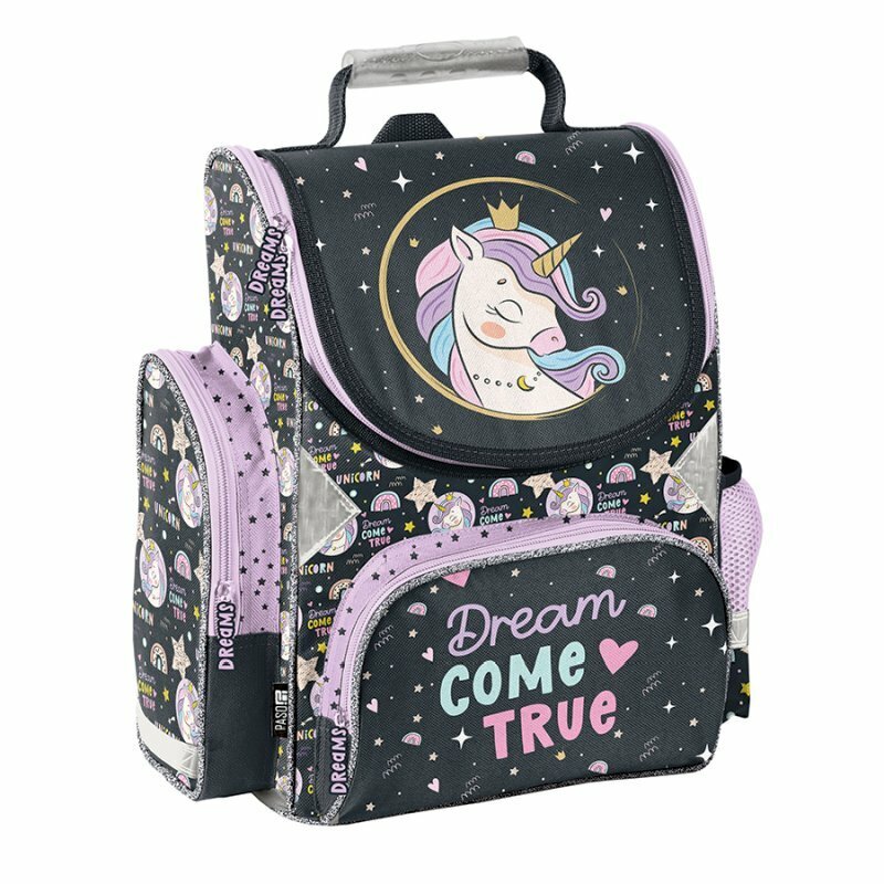 Wyjątkowo lekki tornister szkolny (tylko 850g). W głównej komorze wewnętrzna przegroda, dodatkowo kieszonka z siatki oraz przeźroczysta kieszeń na wizytówkę lub plan lekcji. Plecy ergonomiczne,pokryte siatką, usztywniane i profilowane z systemem wentylacji. przeczytaj całość