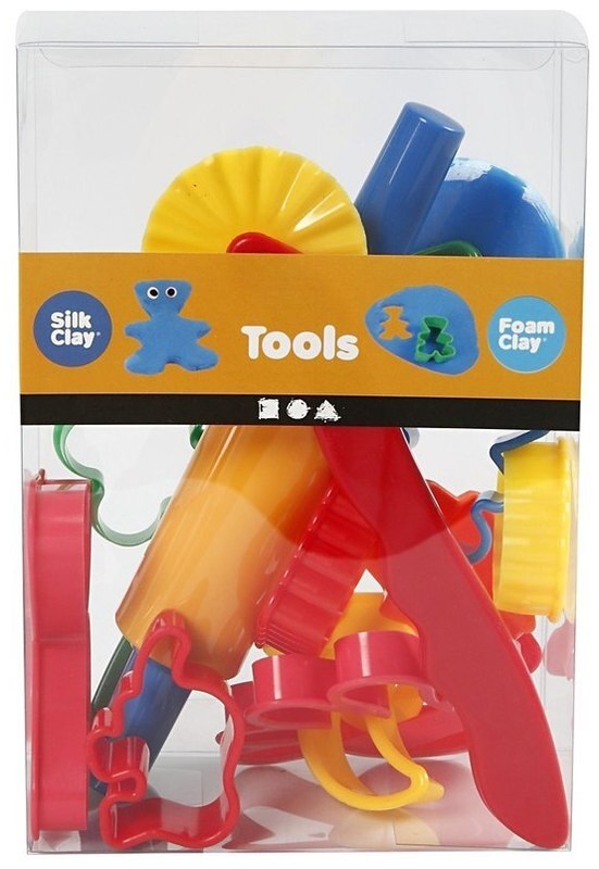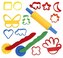 Plastikowe narzędzia dla dzieci do mas plastycznych. Wymiary foremek od 3,5x3,5 cm do 7x9 cm. W opakowaniu: wałek, 2 różne radełka i 12 foremek do wycinania o różnych kształtach. Nieodpowiednie dla dzieci w wieku poniżej 36 miesięcy. przeczytaj całość