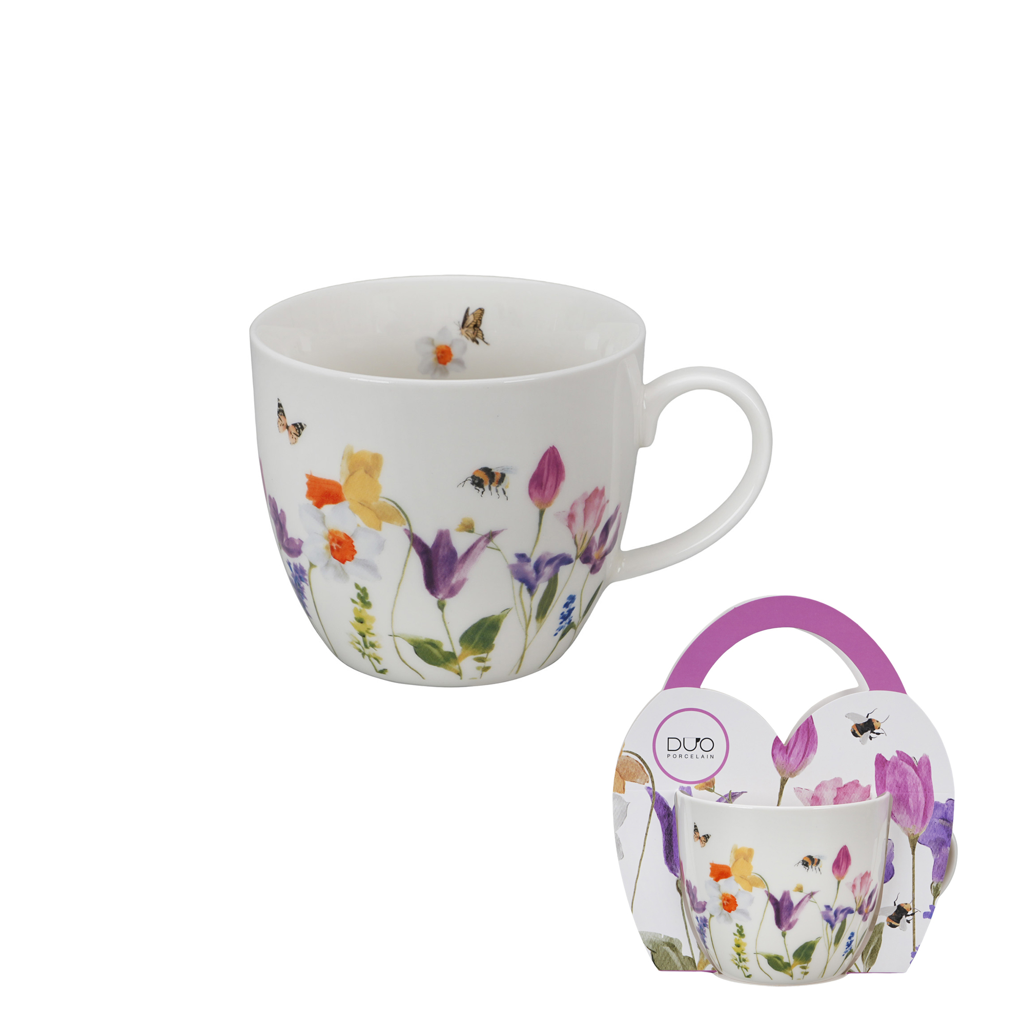 Kubek 460 ml w koszyczku MAY wchodzący w skład linii Kwiaty Classic wykonany z porcelany New Bone China, która charakteryzuje się naturalnym kremowo-białym kolorem z delikatnym połyskiem oraz wyjątkową wytrzymałością i trwałością. Linia zdobiona kolorowymi kwiatami takimi jak żonkile o jasnych i...