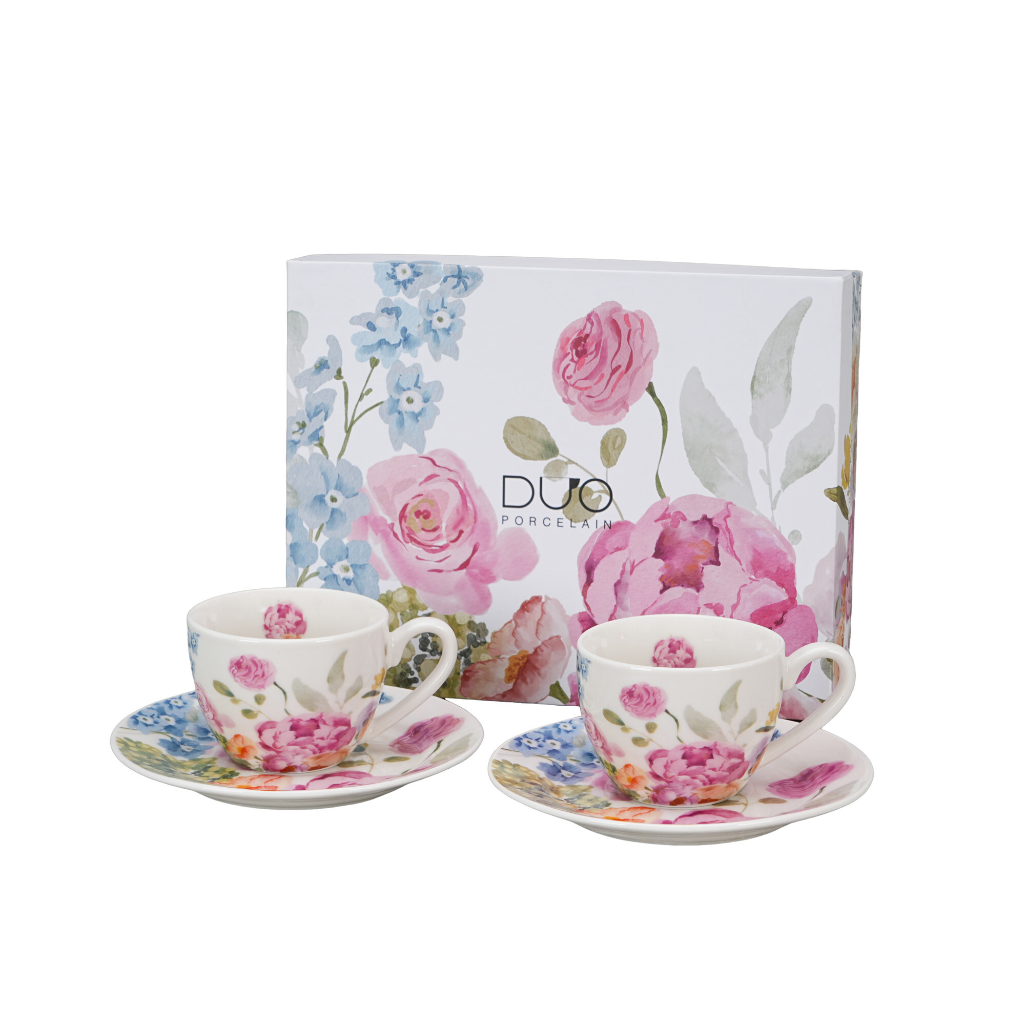 Komplet dwóch filiżanek do espresso JUNE wchodzący w skład linii Kwiaty Classic wykonany z porcelany New Bone China, która charakteryzuje się naturalnym kremowo-białym kolorem z delikatnym połyskiem oraz wyjątkową wytrzymałością i trwałością. Linia zdobiona motywem fantazyjnej kompozycji...