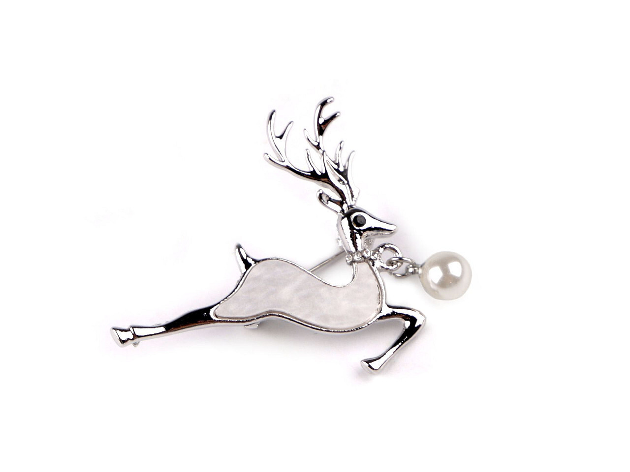 Elegantní brož s jelenem bude perfektním doplňkem vašeho oděvu. Je ozdobená perlou a imitací perleti. Díky broušeným kamínkům v oku a okolo krku se jemně třpytí, skvěle dozdobí košile, saka, svetry, kabelky či čepice. Hodí se i na ozdobné sepnutí šátku.