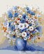 Obraz diamentowy - Niebieski wazon z kwiatami to nie tylko świetny wybór do twórczego relaksu, ale także piękna dekoracja, którą możesz z dumą wyeksponować w domu lub w biurze.