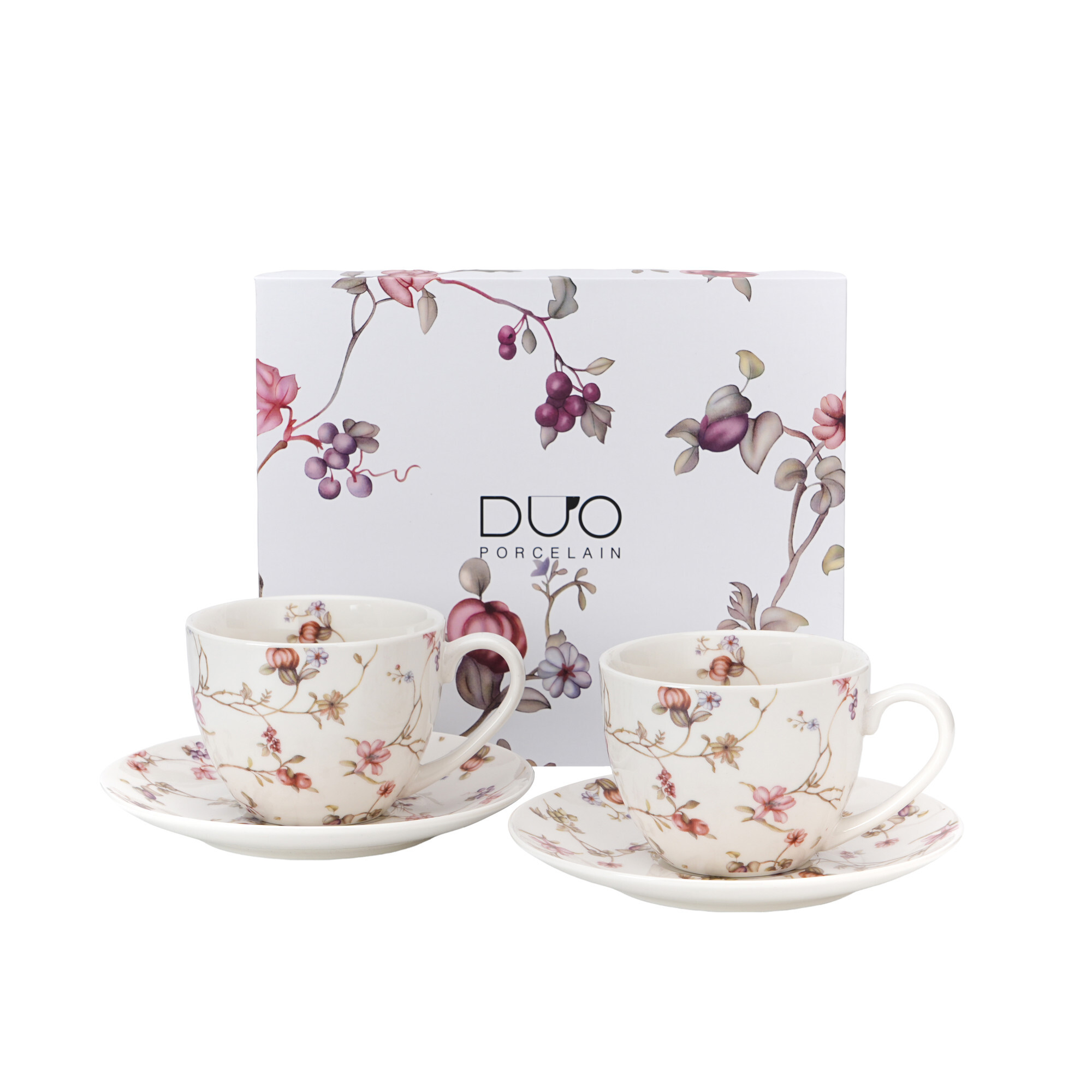 Komplet dwóch filiżanek ze spodkami SAFA wchodzący w skład linii Kwiaty Classic wykonany z porcelany New Bone China, która charakteryzuje się naturalnym kremowo-białym kolorem z delikatnym połyskiem oraz wyjątkową wytrzymałością i trwałością. Linia zdobiona niepowtarzalnym wzorem inspirowanym...