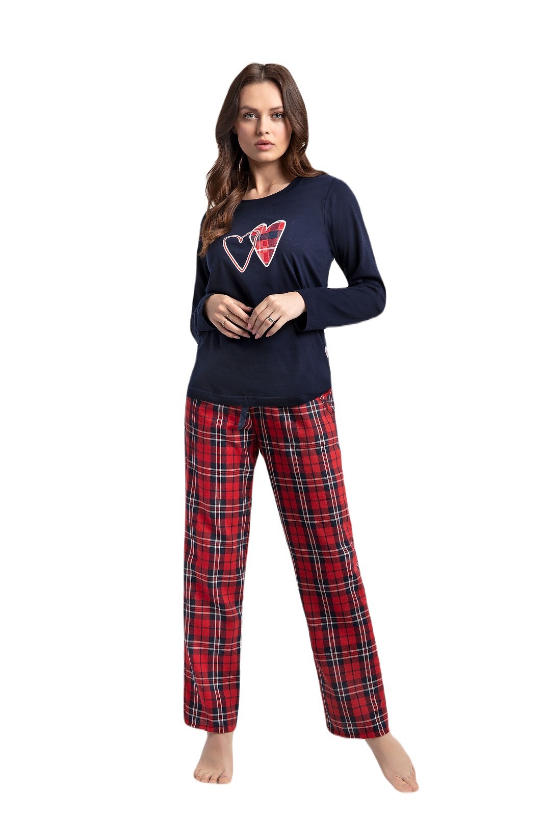 Piżama Luna 657 dł/r Flanela M-2XL damska granatowy-czerwony XL