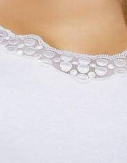 Koszulka damska- na wąskim ramiączku- z miłej i przyjemnej dla ciała bawełny- dekolt zdobi wstawka efektownej gipiury przeczytaj całość