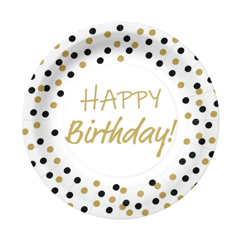 Papírové talíře Birthday Confetti Golg-Black, průměr 23 cm, balení obsahuje 10ks. Papírové talíře jsou ideálním řešením pro snadné stolování bez nepořádku. przeczytaj całość