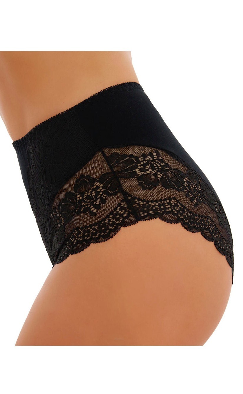 Bawełniane figi damskie- wysoka linia talii, zabudowane biodra- przód i nogawki zdobi koronka o kwiatowym motywie przeczytaj całość