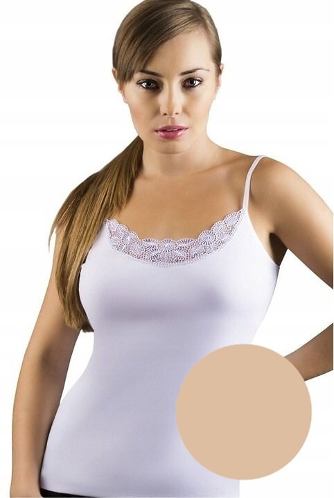 Koszulka damska- z wysokiej jakości bawełny- na wąskich ramiączkach- dekolt zdobi wstawka efektownej gipiury przeczytaj całość