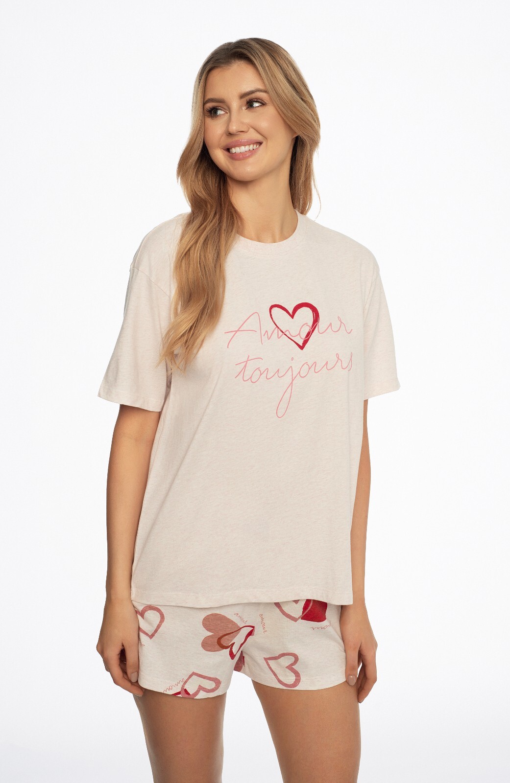 Piżama damska- koszulka z krótkim rękawem- ozdobiona printem w serduszka- spodenki krótkie, w kontrastującym kolorze, wzorzyste przeczytaj całość