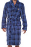 Szlafrok męski- miła i miękka dzianina w kratkę- szalowy kołnierz- na piersi mała aplikacja- wiązany w pasie- mankiety i kołnierz obszyte jednolitą lamówką- po bokach wygodne kieszenie przeczytaj całość