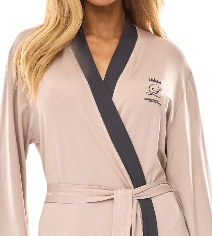 Szlafrok L&L 2505 długi M-2XL wiskoza damski beżowy L-170/102/110