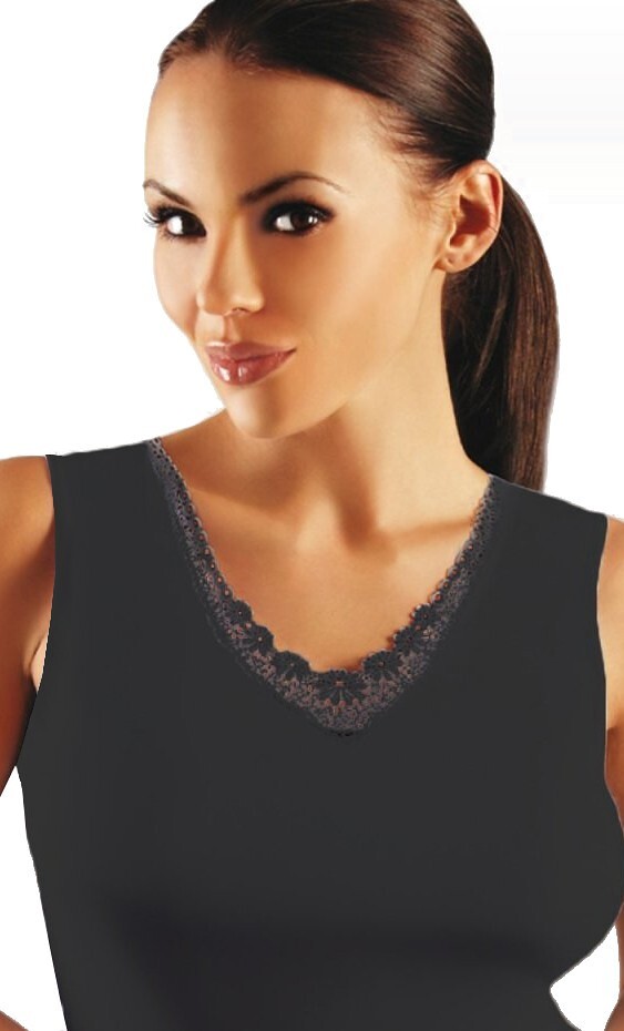 Koszulka z miękkiej bawełny- obszyta połyskującymi lamówkami- dekolt w serek ozdobiony gipiurą o kwiatowym motywie przeczytaj całość