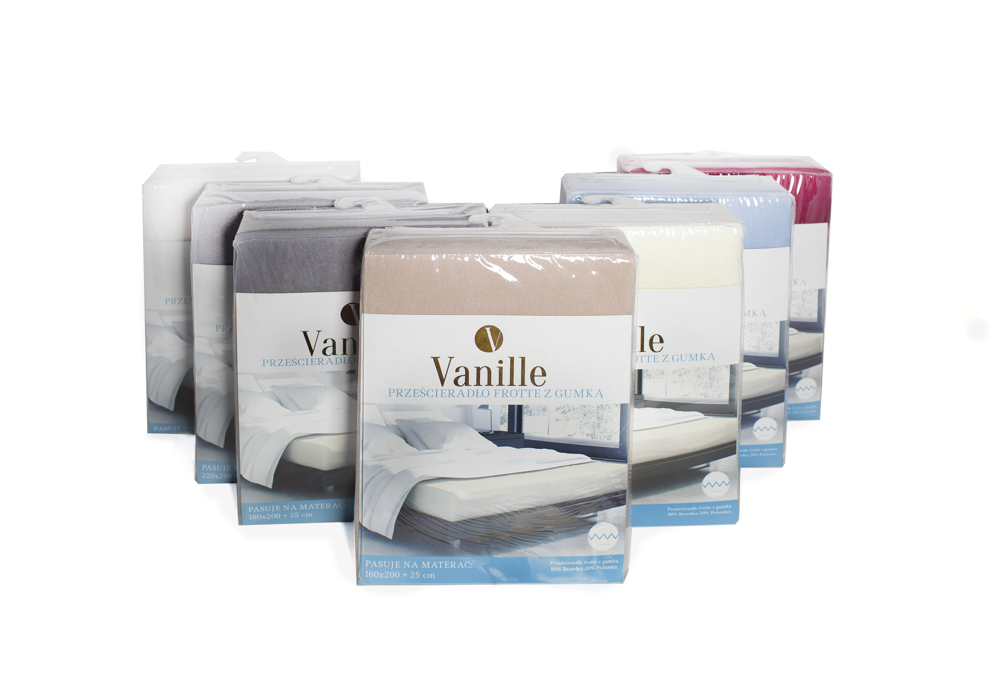 PRZEŚCIERADŁO VANILLE 160X200+25 BEŻOWY FROTTE Z GUMKĄ 80% BAW.20% PL.