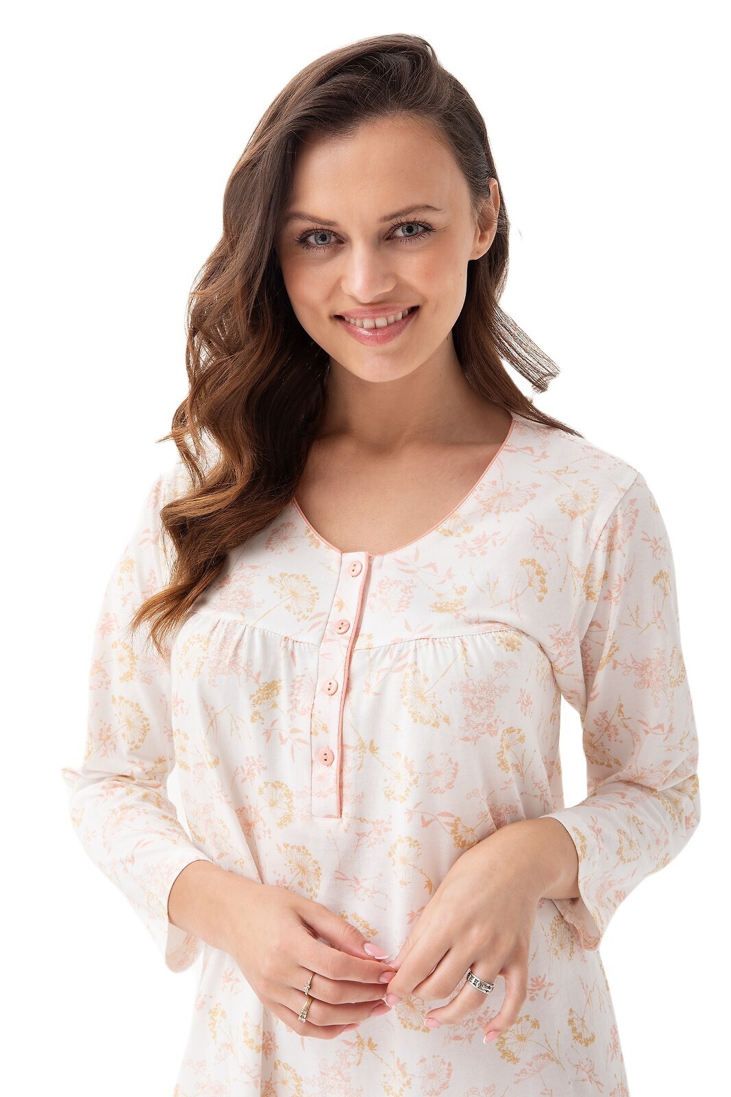 Bawełniana koszula damska- efektowny kwiatowy wzór- długi rękaw- dekolt lekko marszczony, zapinany na guziki- długość za kolano przeczytaj całość