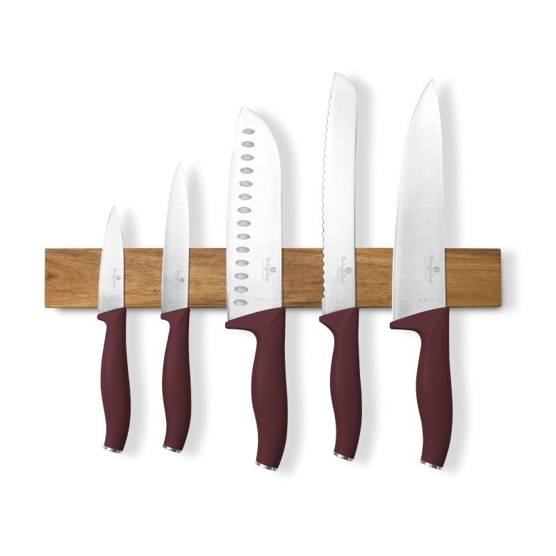 Přineste do své kuchyně sofistikovaný styl a maximální funkčnost s touto elegantní sadou 6 nožů v hlubokém tónu matné bordó, doplněnou o luxusní magnetický věšák z akátového dřeva. Spojení moderního designu a přírodního prvku vytváří dokonalou rovnováhu krásy a praktičnosti.Obsah...