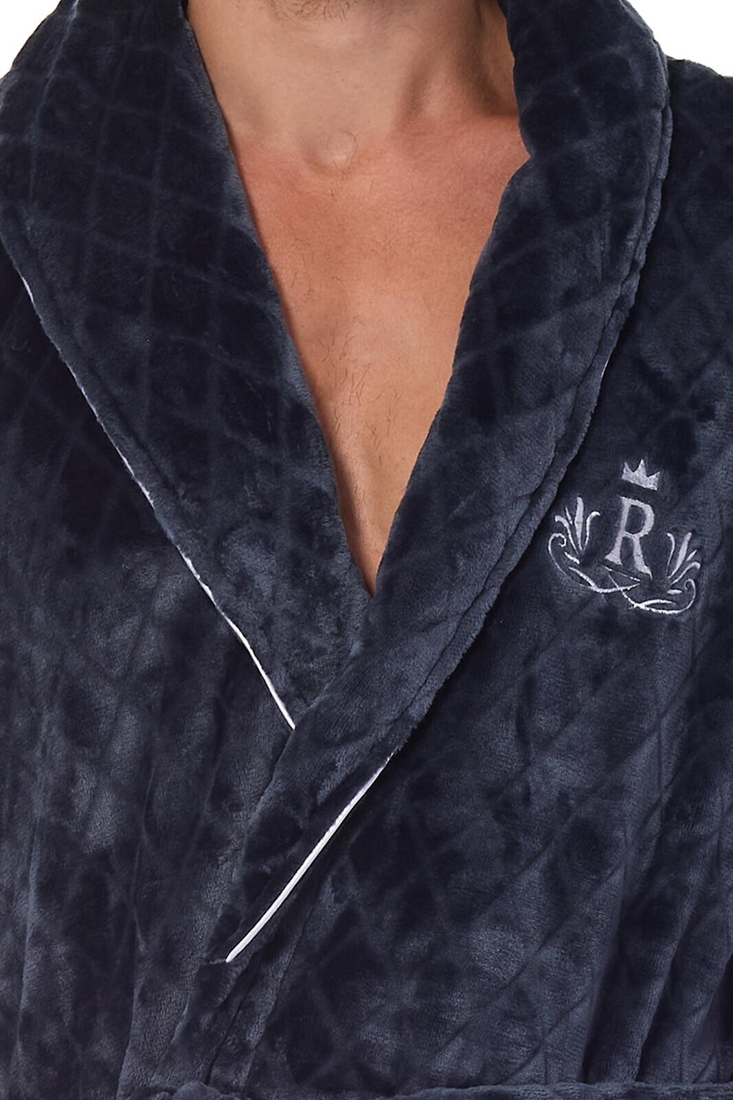 Krótki szlafrok męski- miła i miękka dzianina- szalowy kołnierz- na piersi haftowana aplikacja- wiązany w pasie- mankiety i kołnierz obszyte jednolitą lamówką- po bokach wygodne kieszenie przeczytaj całość