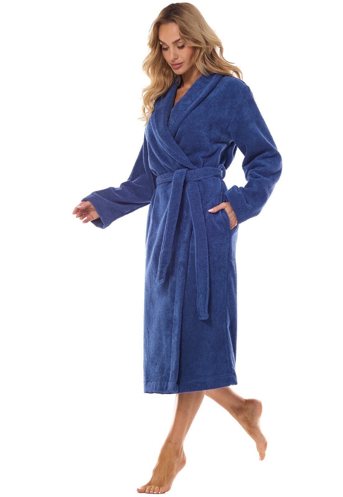 Długi szlafrok damski- bawełniana dzianina typu frotte- szalowy kołnierz- wiązany w pasie- po bokach kieszenie przeczytaj całość