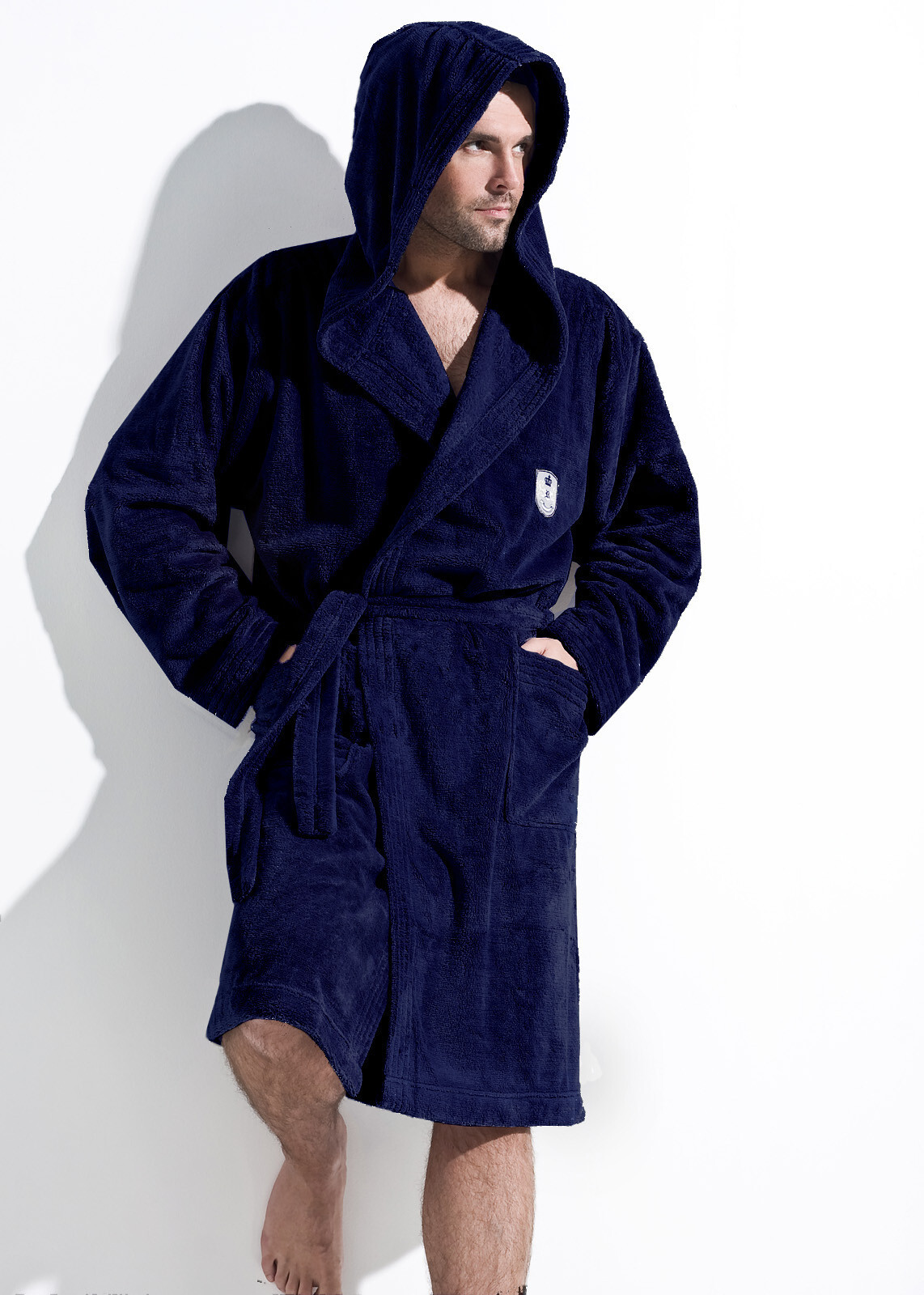 Szlafrok męski- z kapturem, wiązany w pasie- z miękkiej dzianiny (soft)- na biodrach kieszenie zewnętrzne- na wysokości klatki piersiowej naszyta aplikacja- miły i przyjemny w dotyku- gwarantuje komfort noszenia przeczytaj całość