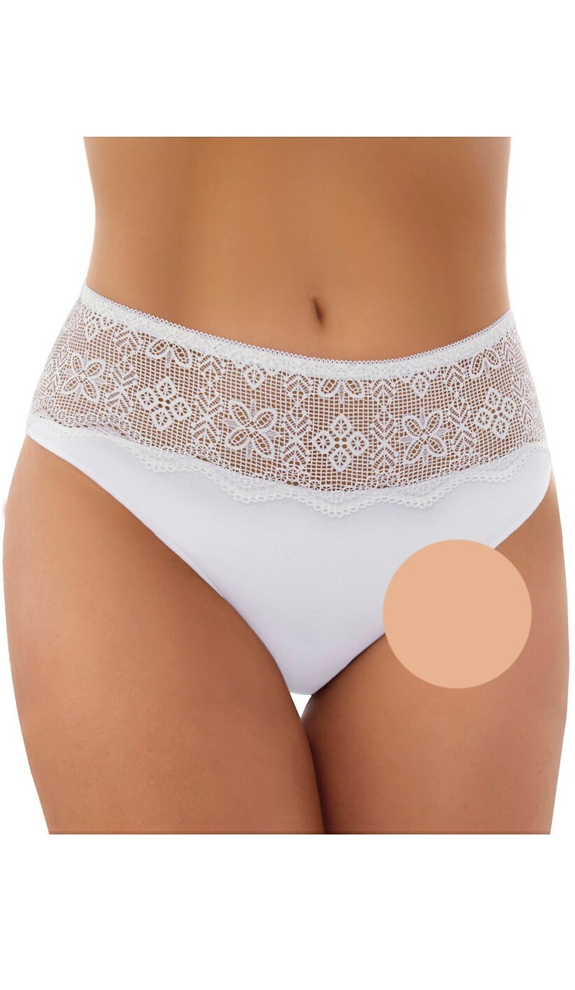 Klasyczne figi damskie- wysokiej jakości bawełna- z przodu w górnej linii ażurowa koronka- zabudowane biodra- tył gładki przeczytaj całość