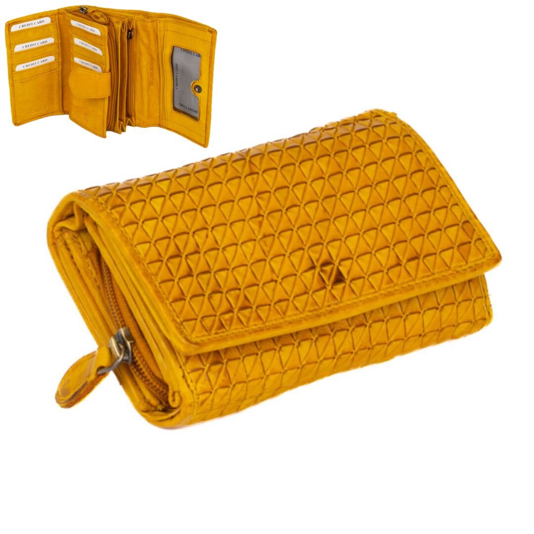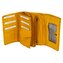 Peněženka dámská kožená v nádherné hořčičně žluté barvě. Peněženka dámská kožená je rozdělena na dvě části a zavírá se klopou s pevným drukem. Po otevření klopy jsou ihned přístupné tenké kapsy, dvě menší kapsy uvnitř peněženky a velká kapsa na bankovky v klopě i peněžence. V prostřední části...