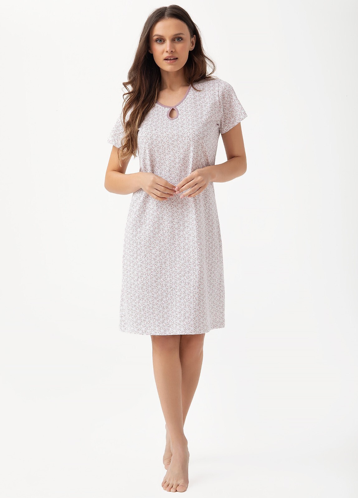 Koszula damska- wysokiej jakości wzorzysta bawełna- krótki rękaw- dekolt obszyty lamówką, ozdobiony efektownym wycięciem w kształcie łezki- długość do kolan przeczytaj całość