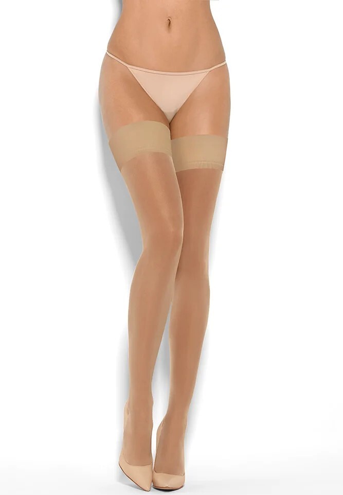 Pończochy samonośne 15 den- z gładkim wykończeniem na silikonie- bez wzmocnienia na palcachSkład: 90% poliamid, 10% elastan przeczytaj całość