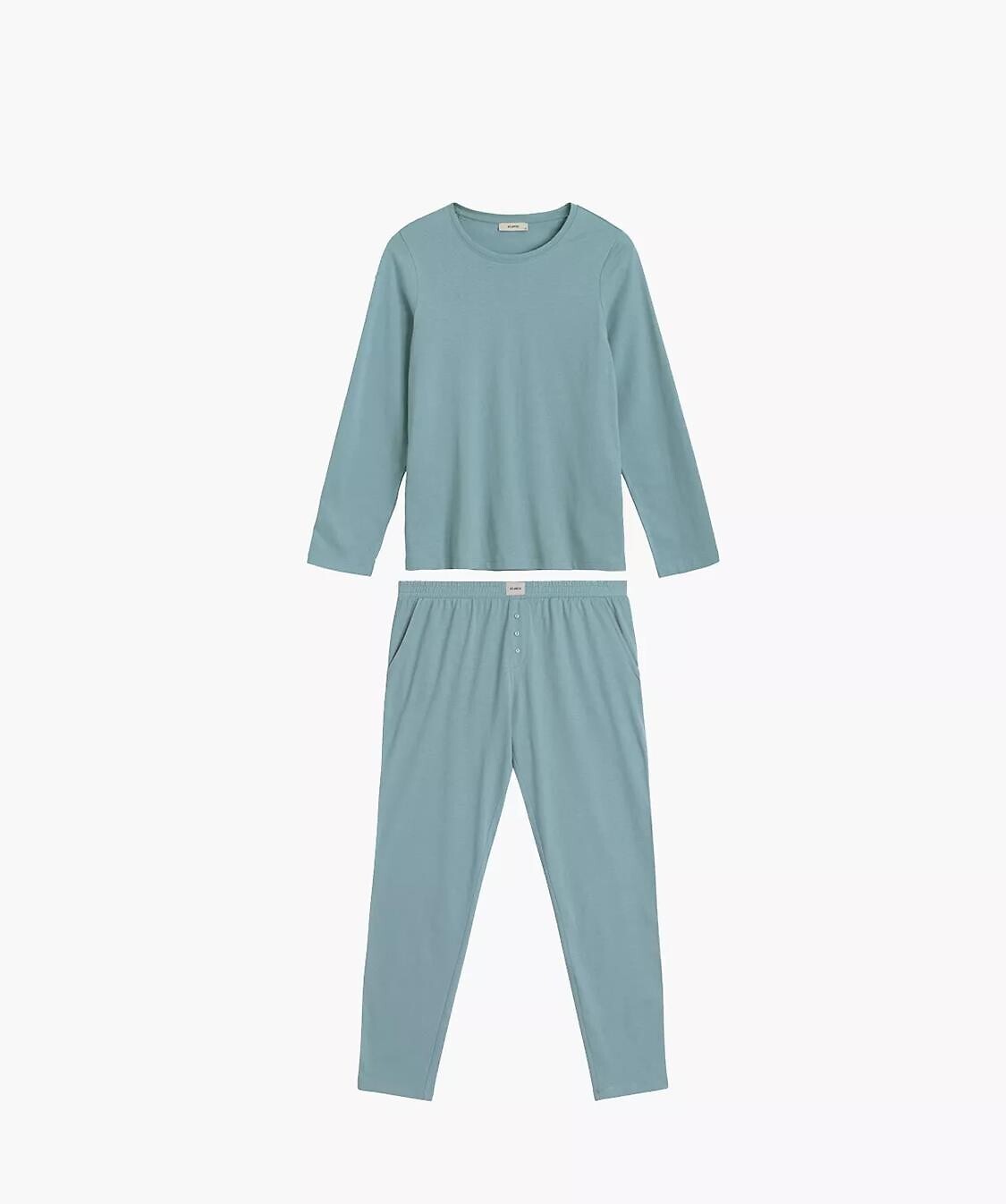 Piżama damska o sportowym kroju- miękka dzianina- góra o prostym kroju, gładka- długi rękaw- spodnie o klasycznym kroju z długą nogawką, gładkie- guziczki nieodpinane- nieuciskający ściągacz w talii- praktyczne kieszenie po bokach- maksymalna wygoda noszeniaSkład: 100% bawełna przeczytaj całość