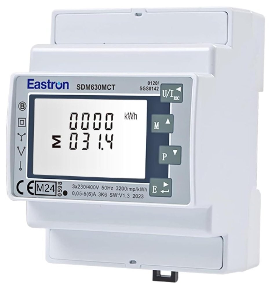 Eastron SDM630MCT-MODBUS-MID, Modbus elektroměr, 1/5A vstup, třífázový, RS485, pulsní výstupy