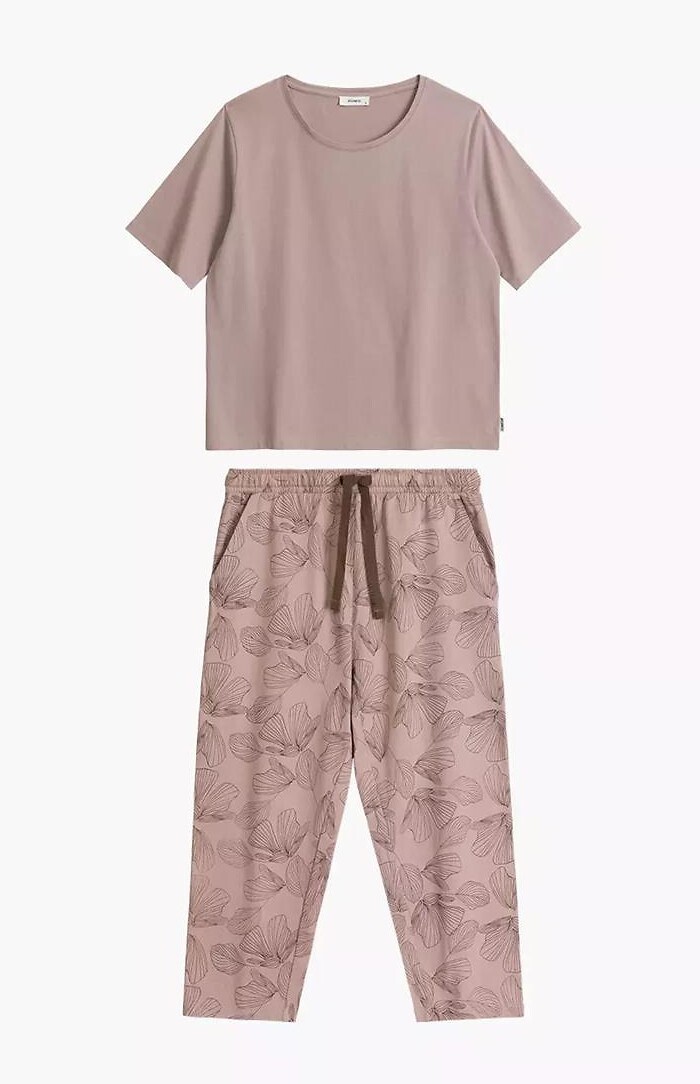 Piżama damska- koszulka jednolita- krótki rękaw- półokrągły dekolt- do kompletu wzorzyste spodnie- długość 3/4- wygodne kieszenie- w pasie wiązane troczki do regulacji obwodu pasa przeczytaj całość
