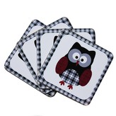 Podtácek MDF 10*10 cm, sova černá, sada 4 ks