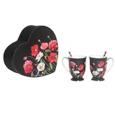 HOME ELEMENTS Sada dvou šálků 280 ml se lžičkami, Máky černé