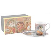 HOME ELEMENTS Hrnek 250 ml, s podšálkem, Klimt, Polibek tmavý