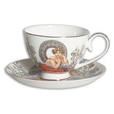 HOME ELEMENTS Hrnek 250 ml, s podšálkem, Mucha světlý