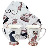 HOME ELEMENTS Sada dvou šálků 280 ml se lžičkami, Kočky