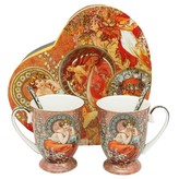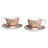 HOME ELEMENTS Sada dvou šálků 280 ml se lžičkami, Klimt, Polibek zlatý