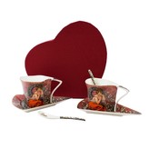 HOME ELEMENTS Sada dvou šálků 250 ml s podšálky a lžičkami, Růže