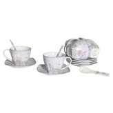 HOME ELEMENTS Sada 6 ks - šálky 250 ml s podšálky a lžičkami, Růže