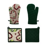 HOME ELEMENTS Kuchyňská sada - chňapka 18*32 a podložka 20*20 cm, vánoční srdíčka