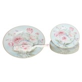 HOME ELEMENTS Dortový set: dortový talíř, 6 x talíř, dortová lžíce, Růže