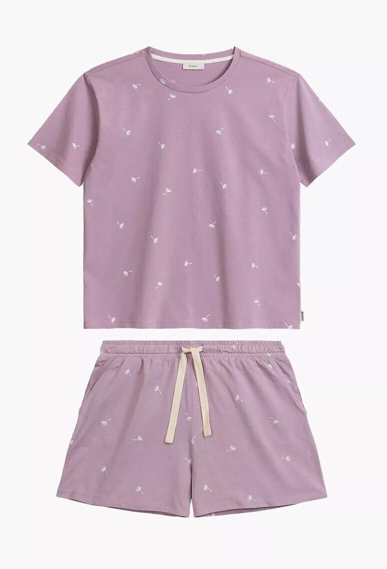 Letnia piżama damska- wysokiej jakości bawełna- delikatny print w dmuchawce- koszulka z krótkim rękawem- półokrągły dekolt- krótkie spodenki z kieszeniami- w pasie wiązany troczek do regulacji obwodu pasa przeczytaj całość