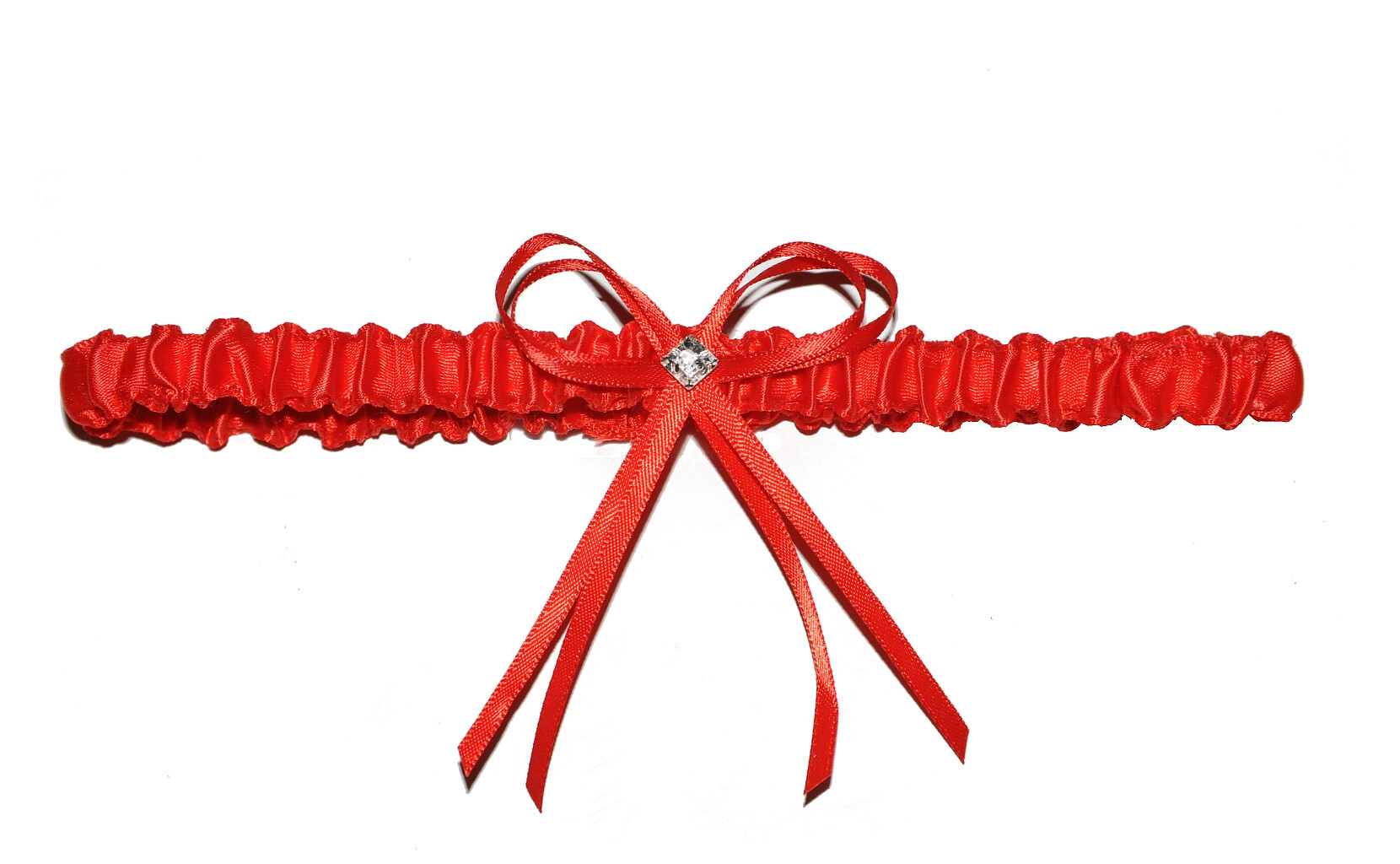 Satynowa, wąska podwiązka w kolorze czerwonym- zdobiona kokardką przeczytaj całość