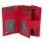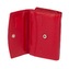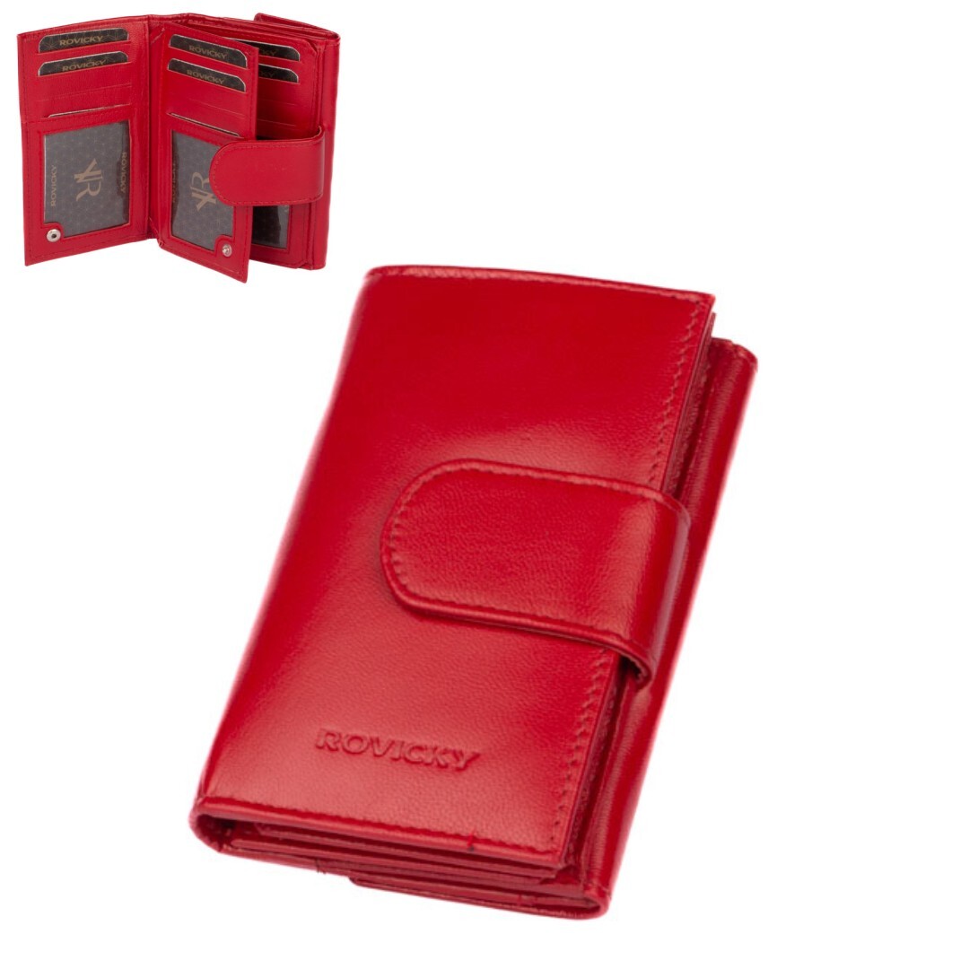 Dámská červená peněženka z pravé kůže je rozdělena na dvě poloviny. První polovina dámské peněženky se uzavírá přezkou s pevným drukem. Druk lze zapnout do dvou poloh, podle zaplnění peněženky. Po otevření této části jsou přístupné všechny kapsy na karty a doklady v několika dalších klopách....