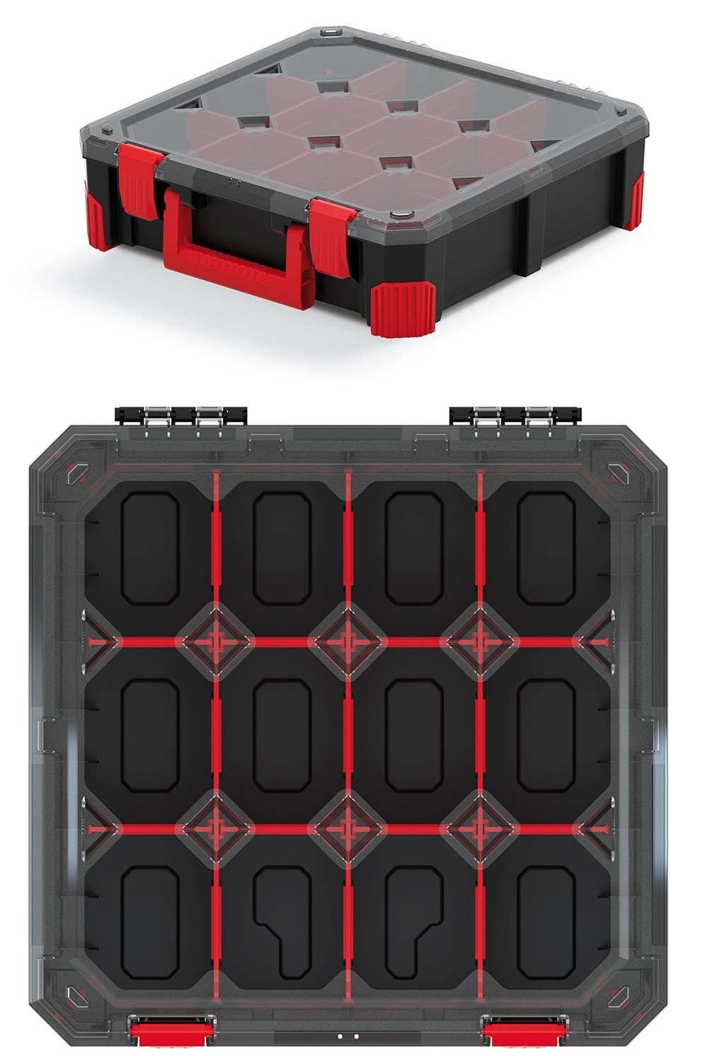 Organizer TITAN to idealne rozwiązanie dla wszystkich, którzy szukają prostego sposobu na uporządkowanie i przechowywanie drobnych przedmiotów w jednym miejscu. Dzięki 12 oddzielnym przegrodom możesz podzielić zawartość według potrzeb - od artykułów biurowych, śrubek i elementów po biżuterię i inne drobiazgi. Przezroczysta pokrywa umożliwia szybki podgląd zawartości bez konieczności otwierania, co oszczędza czas i ułatwia pracę.