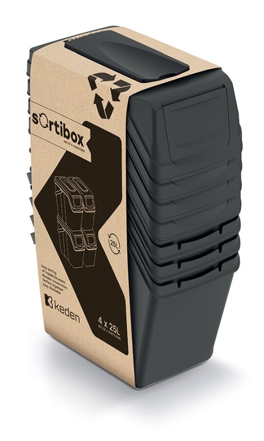 Sada 4 odpadkových košů SORTIBOX - objem: 4x 25 l, barva: recyklovaná černá