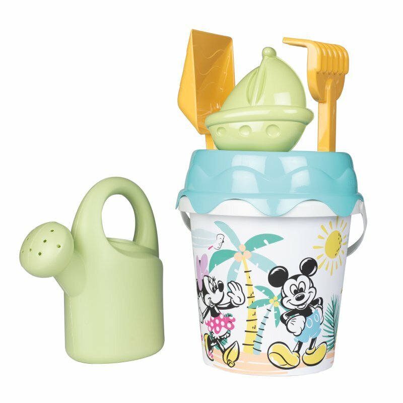 W zestawie z wiaderkiem: grabki, łopatka, foremka i konewka. Wykonane z bioplastiku. Wiaderko z motywem Miki i Minnie, wykonane w technologii IML (wtopienie obrazka w wiaderko)Wymiary: 17x17x35cm.Wiek: 18m+. przeczytaj całość
