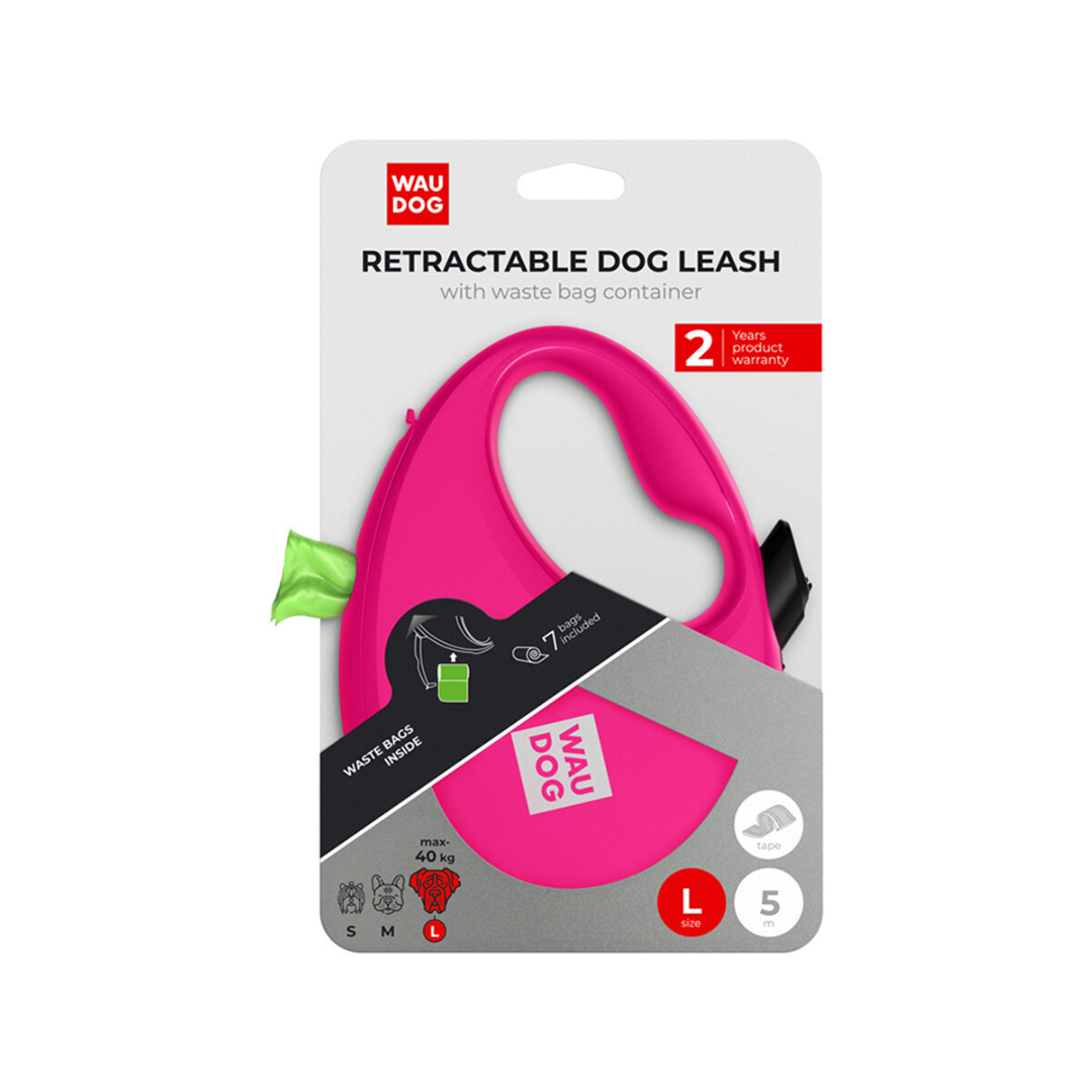WAUDOG vodítko samonavíjecí se zásobníkem na sáčky Růžové 40kg/5m/L