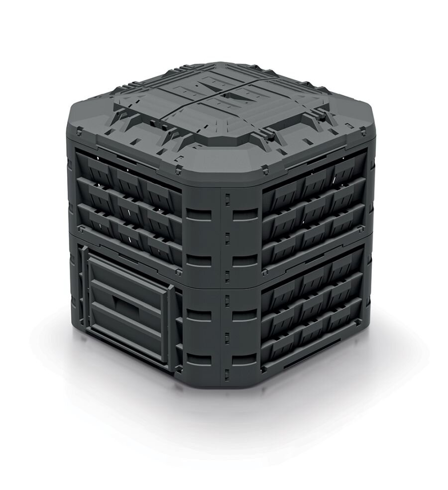 - Oszczędność miejsca - kompostownik zaprojektowano tak, aby efektywnie wykorzystać przestrzeń.