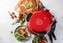 Pizza pec na čerstvou pizzu - červená - DOMO DO9284PZ, 1200 W, až 400 °C, Ø 32 cm, žáruvzdorný keramický kámen